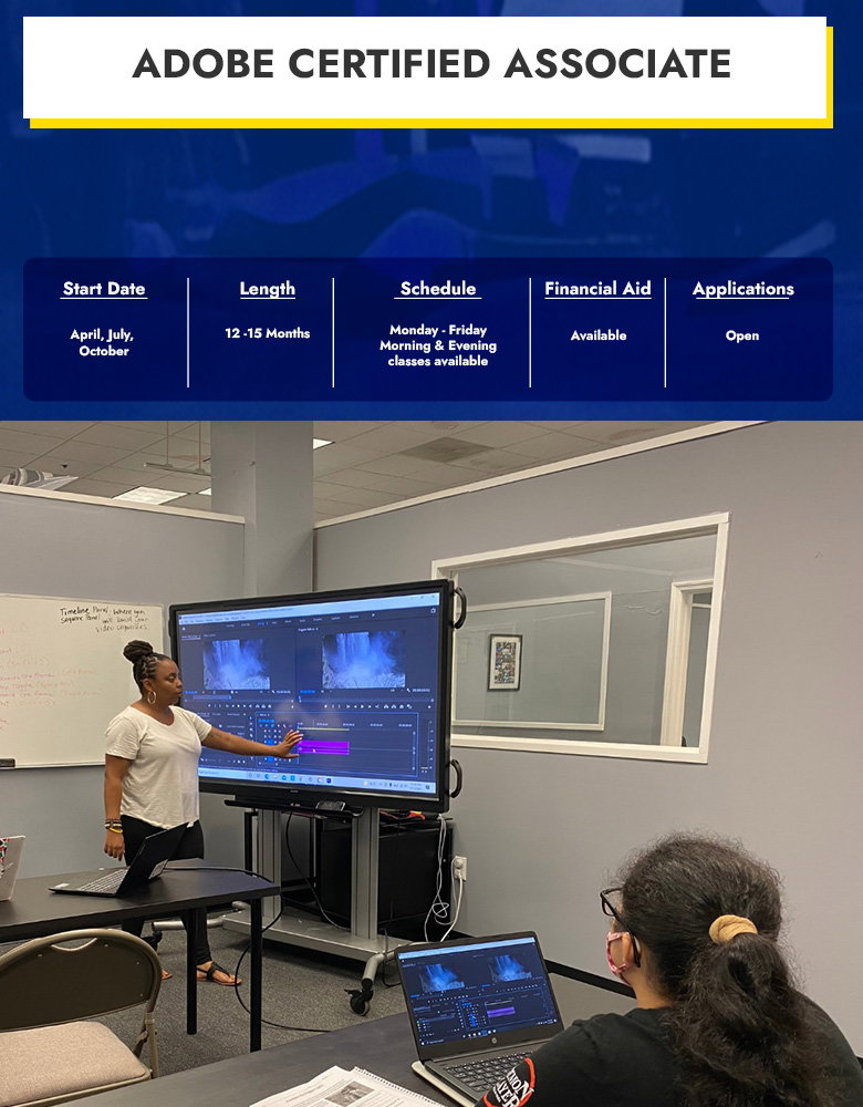 The Adobe Certified Associate Program at Ideal Institute of Technology equips students with expertise in Adobe Creative Cloud software, providing technical and creative skills to excel in the digital content industry. With 1,200 clock hours spanning 12–15 months, this program combines hands-on training with industry-recognized certifications. Students gain proficiency in graphic design, video editing, and content creation, preparing them for high-demand roles in the creative field.