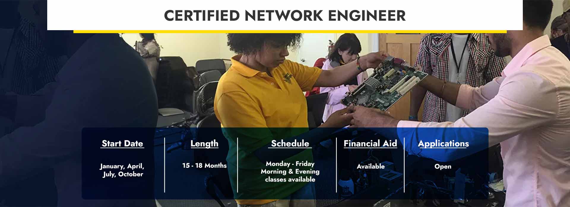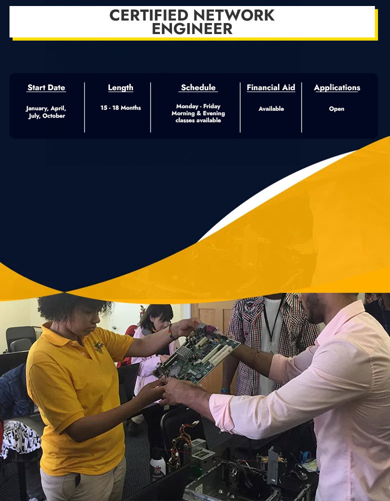 Our Certified Network Engineer Program combines theoretical knowledge and practical skills to prepare students for IT and networking challenges.- CompTIA A+ Certification Part I & II: Foundations in computer hardware, software, and troubleshooting.