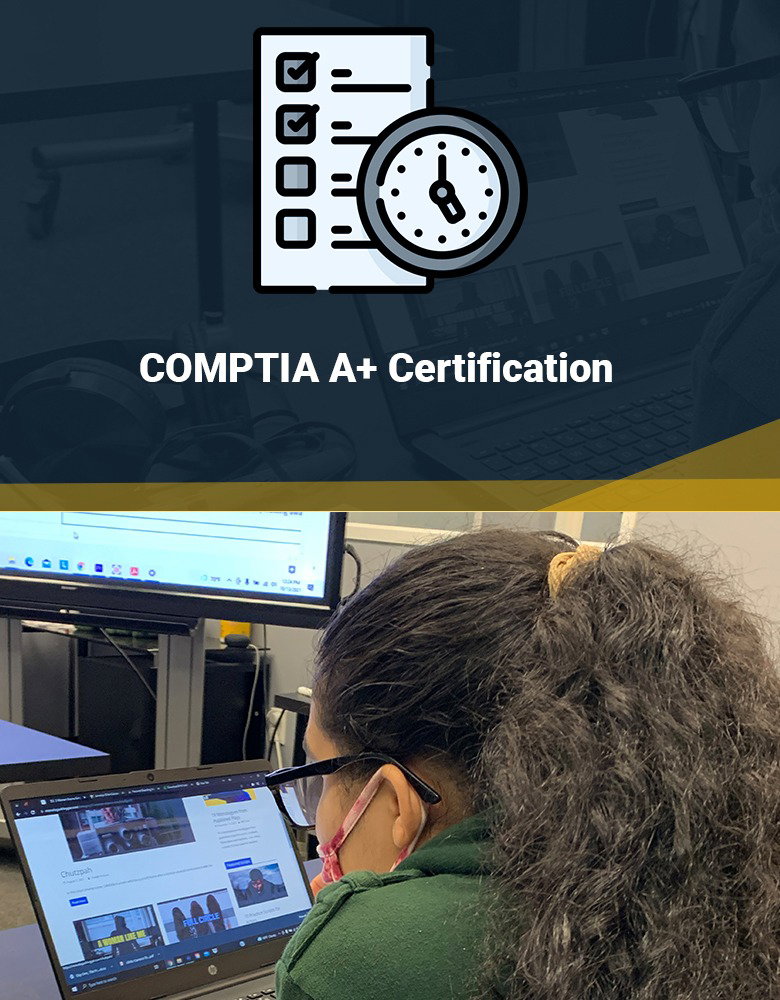 Students who successfully complete a CompTIA A+ Certification Prep course will be able to secure jobs as IT Specialists Tier 1 who can create, manage, and troubleshoot computer systems and networks. Other Careers are Help Desk Technician, IT Field Technician, Network Engineer, Desktop Support and more.