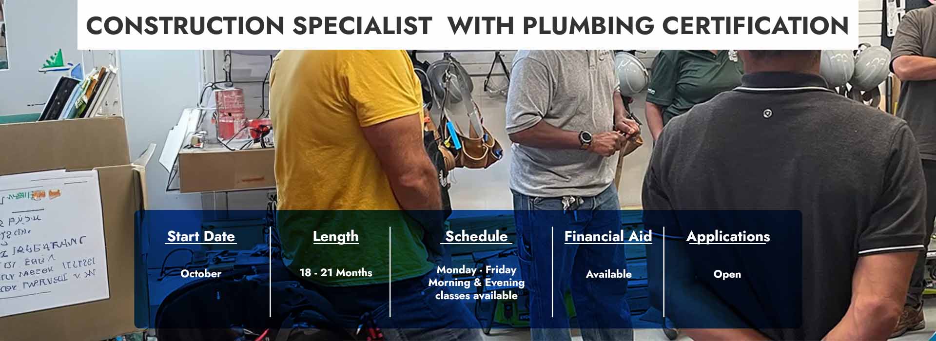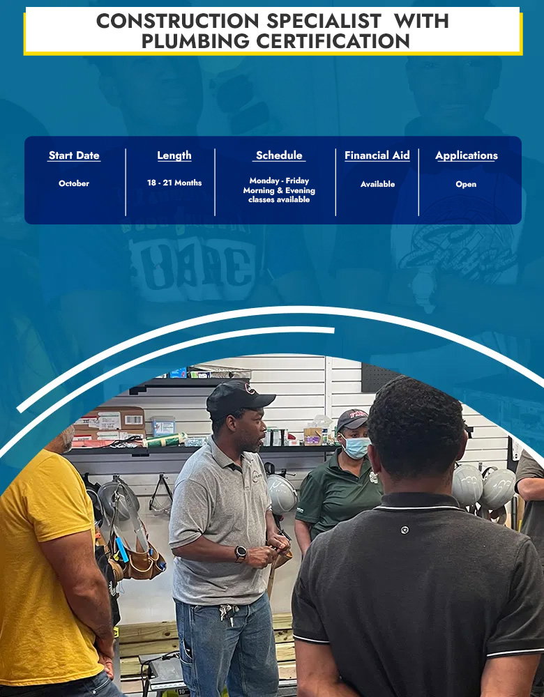 Graduates of the Construction Specialist with Plumbing Certification program are prepared for diverse career paths, including: