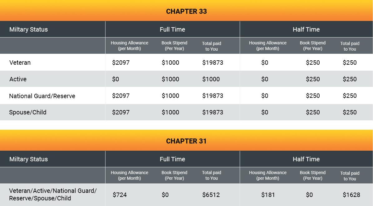 GI BILL® IS A REGISTERED TRADEMARK OF THE U.S. DEPARTMENT OF VETERANS AFFAIRS (VA). MORE INFORMATION ABOUT EDUCATION BENEFITS OFFERED BY THE VA IS AVAILABLE AT THE OFFICIAL U.S. GOVERNMENT WEBSITE.
